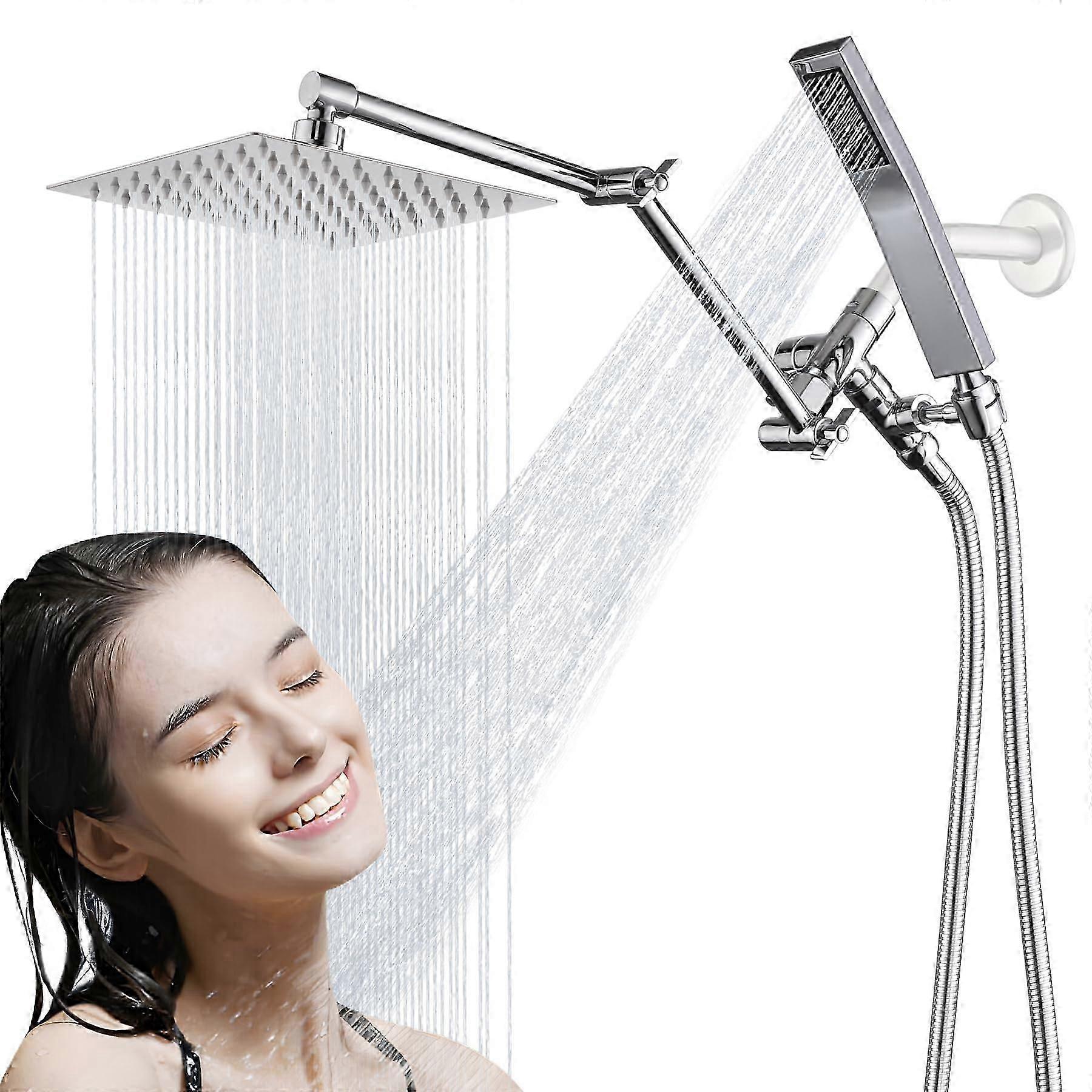 Powerful Shower Duo System - Durable metal construction combines a rainfall shower head and a handheld spray for versatile, long-lasting performance. - The handheld spray is mounted on a 13-inch flexible extension arm, keeping you comfortably away from the wall while showering. - Two adjustable knobs let you easily set the height and angle for a personalized shower experience. - Three-way diverter with a 71-inch stainless steel hose provides flexible configuration. Switch between rainfall head, handheld spray, or use both at once. Note: when both heads are used together, water pressure is shared. - The long 71-inch hose adds reach for thorough rinsing and easier cleaning of the shower area. - Easy installation: everything needed for setup is included with clear instructions; no plumber required. - 3-year warranty and responsive customer support for peace of mind. Specifications and features - Heads: rainfall shower head and handheld spray - Extension arm: 13 inches - Hose: 71 inches, stainless steel - Diverter: 3-way, with compatibility for simultaneous use of both heads - Material: durable metal construction - Installation: plug-and-play with included hardware and instructions Whats included - Rainfall shower head - Handheld spray - 13-inch extension arm - 71-inch stainless steel hose - 3-way diverter - All required installation hardware and clear instructions Use scenarios - Quick full-body rinse using the rainfall head for a broad, even wash. - Targeted cleaning or hair washing with the handheld spray, while maintaining flexibility and control. - Easy rinsing for children, elderly, or mobility-impaired users by keeping distance from the wall while showering.