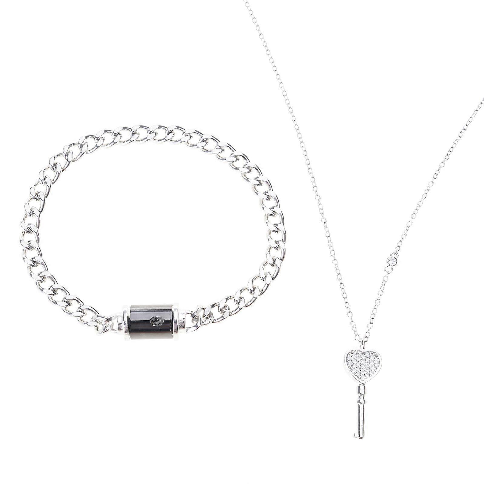 2Pcs Fashion Lock Charm Bracelet Stainless Steel Heart Key Pendant Necklace Metal Chain Bangle Fashion Jewelry Multicolor
