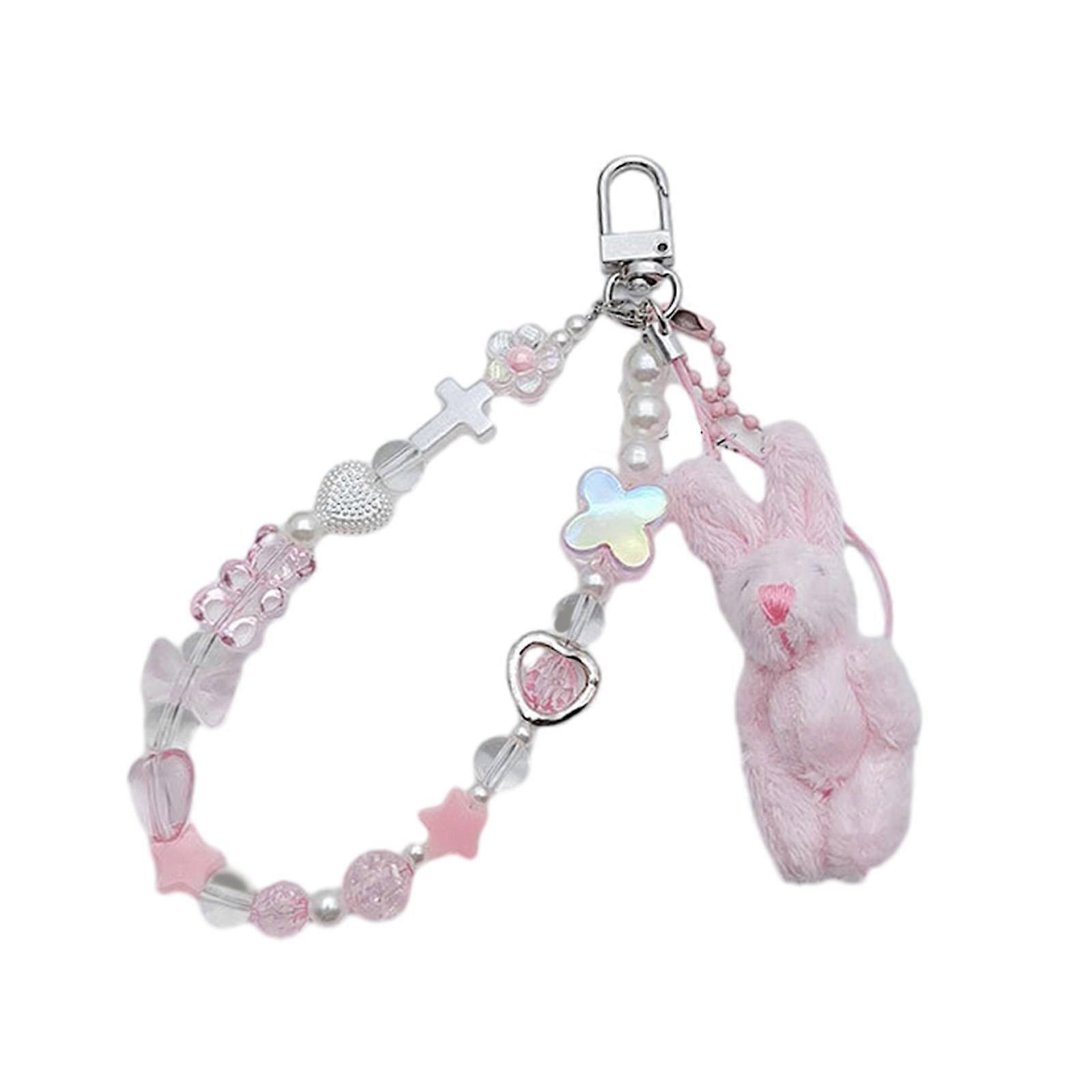 Cute Beaded Phone Charm Cute Phone Jewelry Rabbit Doll Stylish Accessory Phone Pendant Perfect Gift for Woman Girls Multicolor