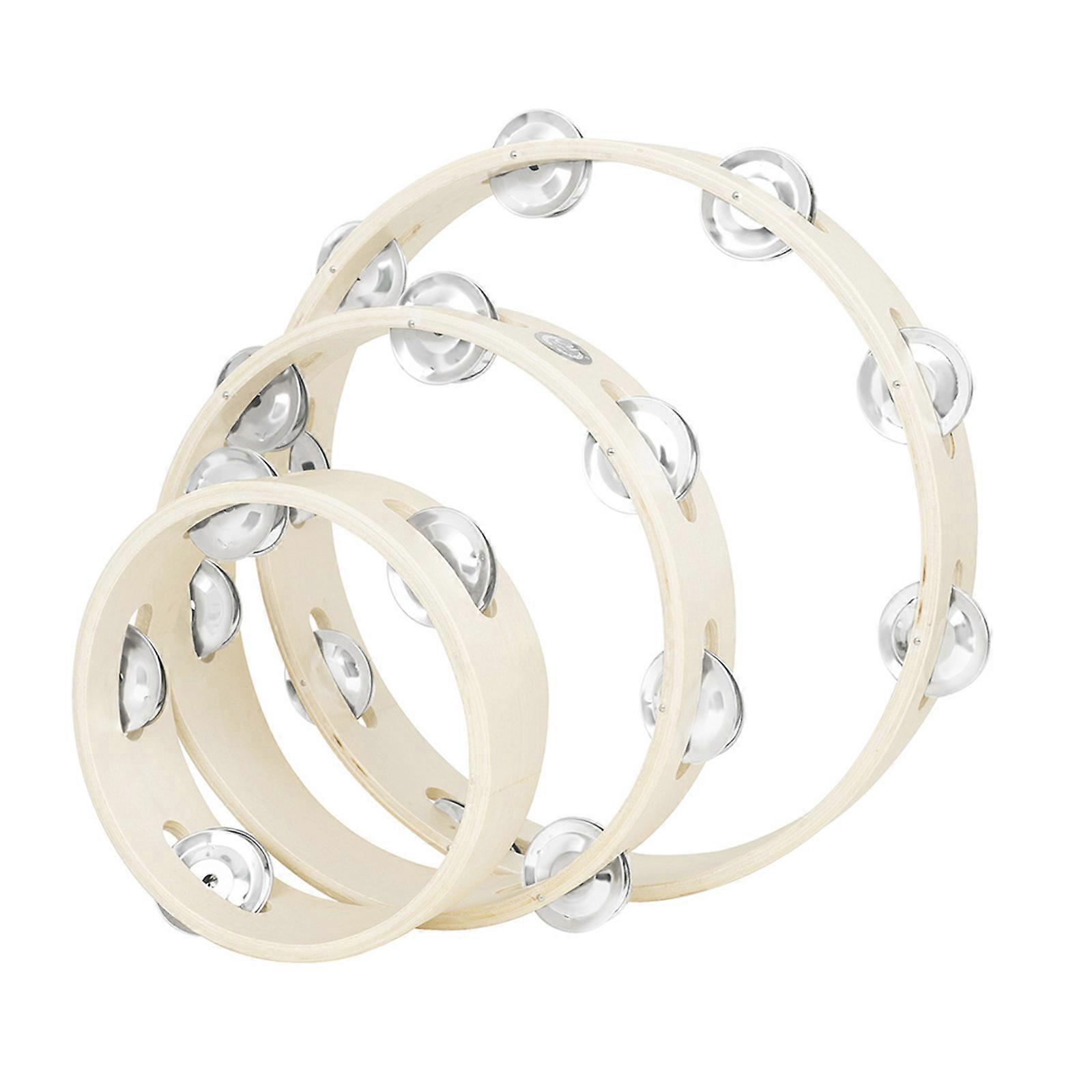 3Pcs Wood Tambourine Metal Bells Single Row Tambourine Rings for Kids Tambourine for Adults Hand Held Tambourine Rings Multicolor