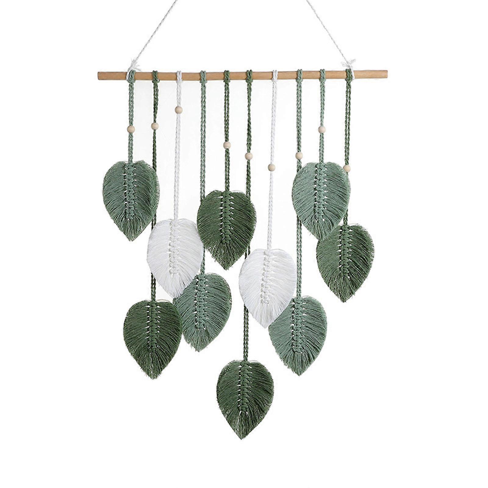 Leaf Macrames Wall Hanging Decor Vintage Handwoven Tapestry for Apartment Home Farmhouse Wood Bead Decorative Tapestries Multicolor