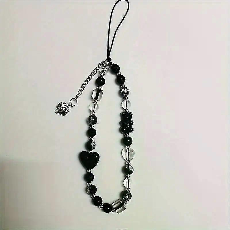 Y2K Black Bear Heart Phone Chain, Trendy Pendant for iPhone, Samsung, Universal Accessories, Cute Hanging Rope for Girl, Korean