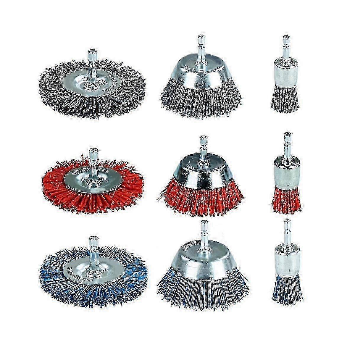 w 9 Pack Nylon Filament Abrasive Wire Brush Wheel & Cup Brush Set ,Nylon Brush Set for Removal Of Rus f54