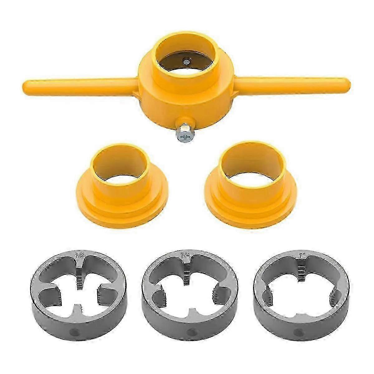 w 6Pcs PVC Thread Maker Tool Pipe Threader Plumbing Tool Kit Pipe Round Die Set with 3 Dies 1/In,3/4in and 1in NPT Die Set