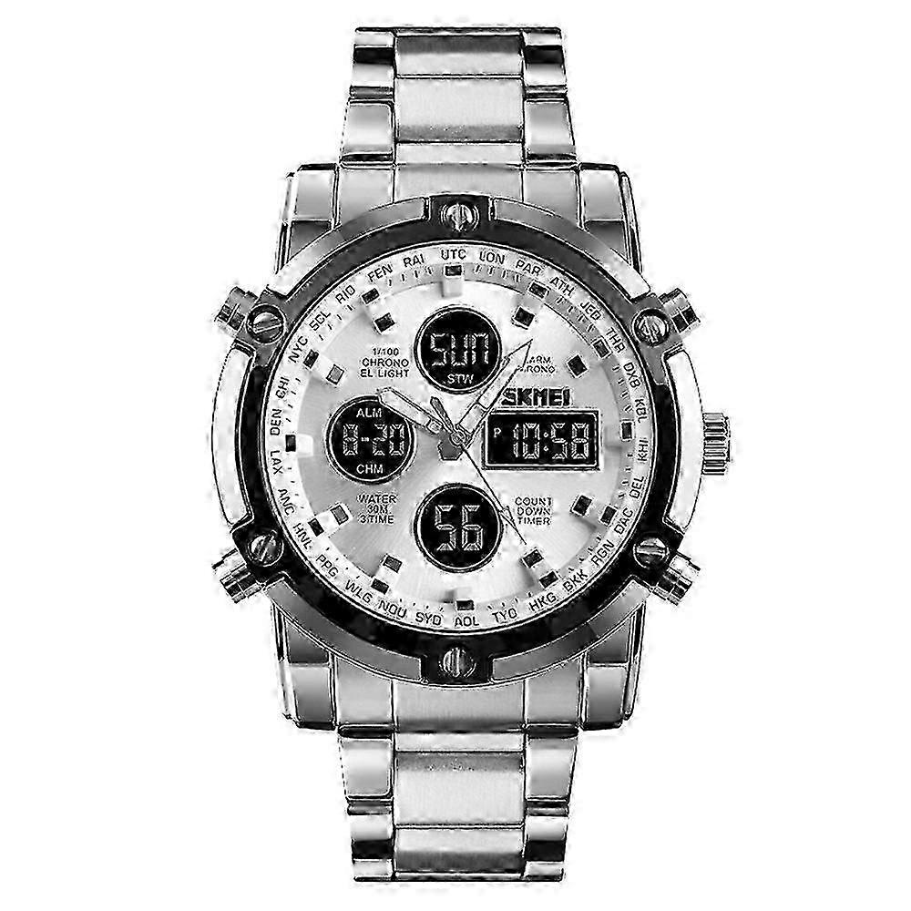 w Skmei Countdown Steel Strap Wristwatch Clock Relogio Masculino Digital Quartz Watch Men Three Time Quartz Wrist Mens Watch 1389