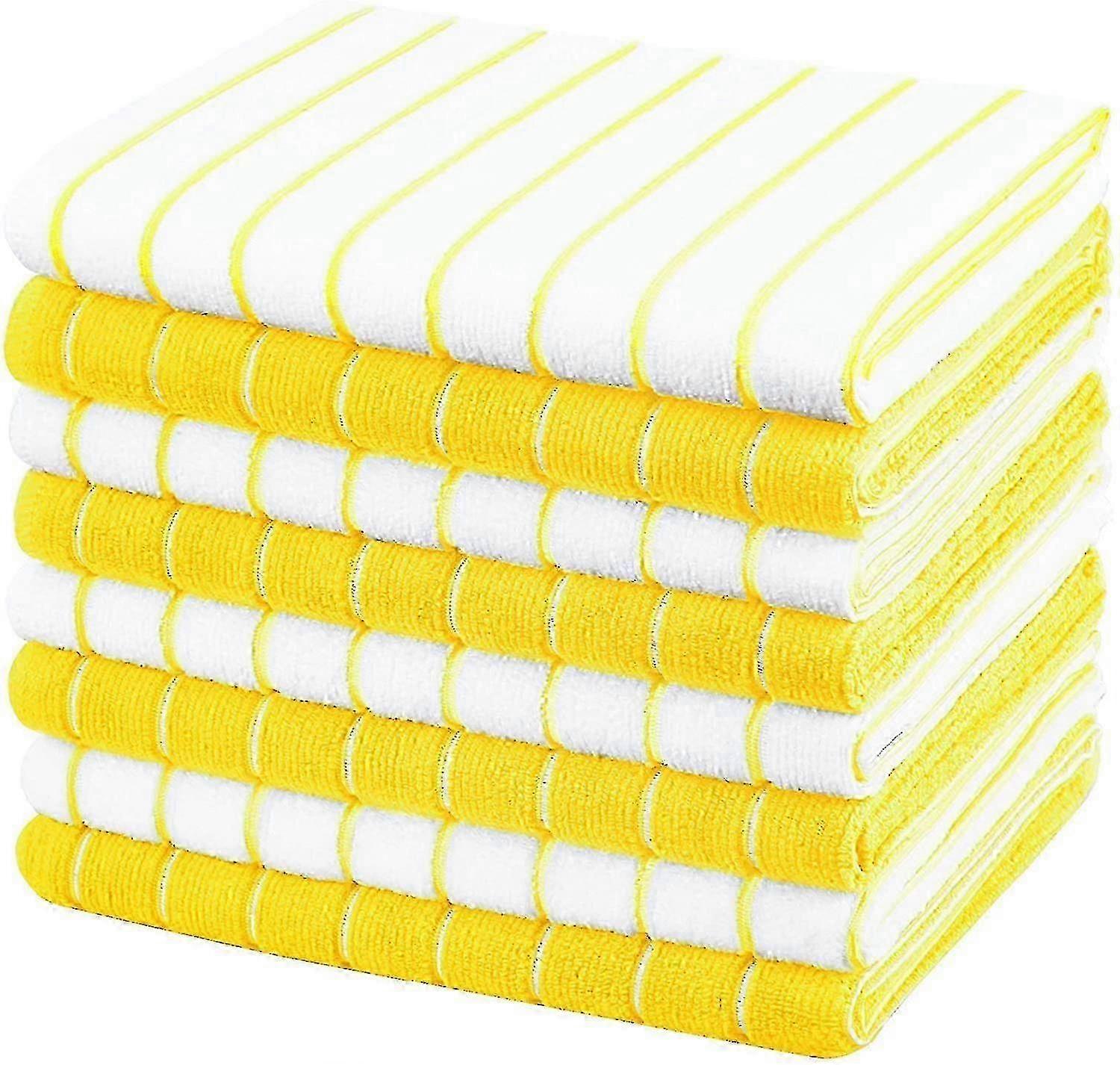 w Microfibre Tea Towels - Pack Of 8 (stripe Designed Yellow And Colours) - Soft, Absorbent, 45 X 65 Cm