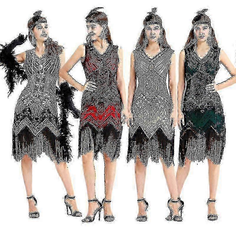Selling Points 1. Material: Sequin 2. What's in the box: Dress 1 Necklace Cigarette Stick Earrings Headwear Stockings Gloves Specifications: Gender: Women's Types: Prom Dresses, Prom Dress, Flapper Dress Characters: Plus Size, Charleston, The Great Gatsby Material: Polyester, Sequin Style: Vintage Dress, Cocktail Dress, Roaring 20s, 1920s Design: Feather Net Weight (kg): 0.71 Waist (cm): S:74 M:78 L:82 XL:88 XXL:96 3XL:102 4XL:108 Holiday: Masquerade, New Year Age Group: Adults' What's in the box: Dress, 1 Necklace, Cigarette Stick, Earrings, Headwear, Stockings, Gloves Note: Due to the light and screen setting difference, the item's color may be slightly different from the pictures. Please allow slight dimension difference due to different manual measurement.