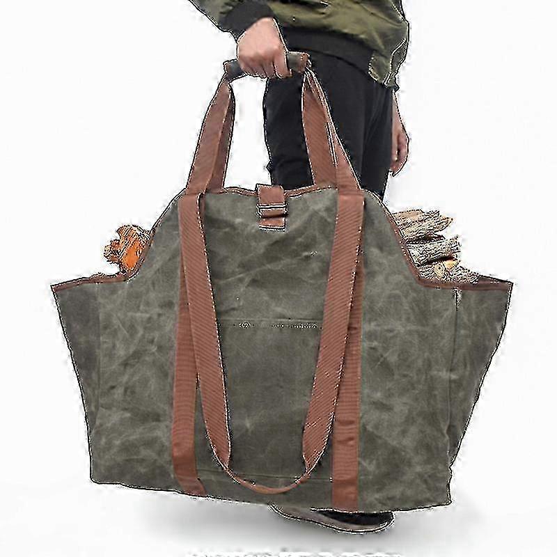 w Waxed Canvas Log Carrier Tote Bag, Extra Large Durable Firewood Holder With Handles And Shoulder Strap, Heavy Duty Wood Carrying Bag F