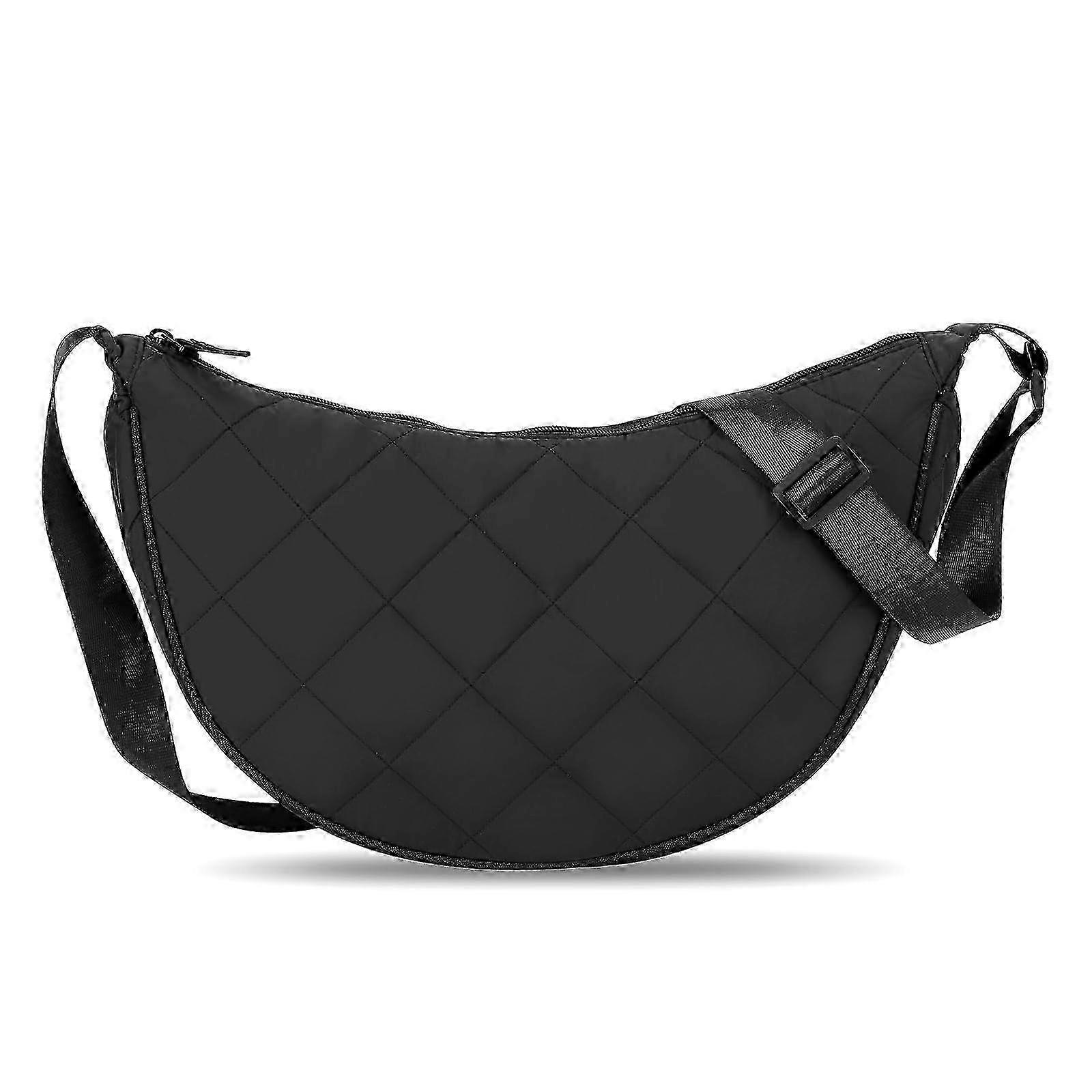 w Quilted Nylon Crescent Bag Crossbody For Women Half Moon Hobo Shoulder Travel Sling Black