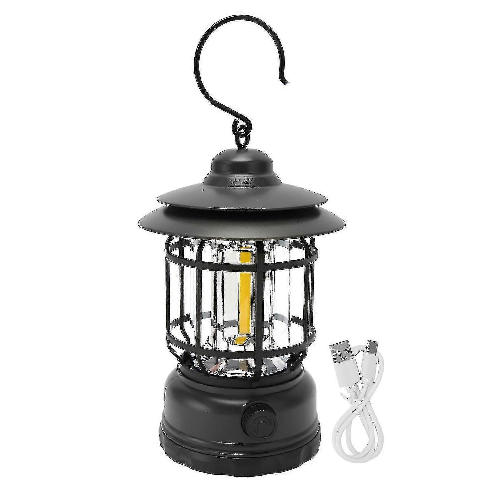 w Vintage Camping Lantern IPX4 Waterproof Eye Protection USB Rechargeable Decorative Portable COB Tent Lamp with Hook Black