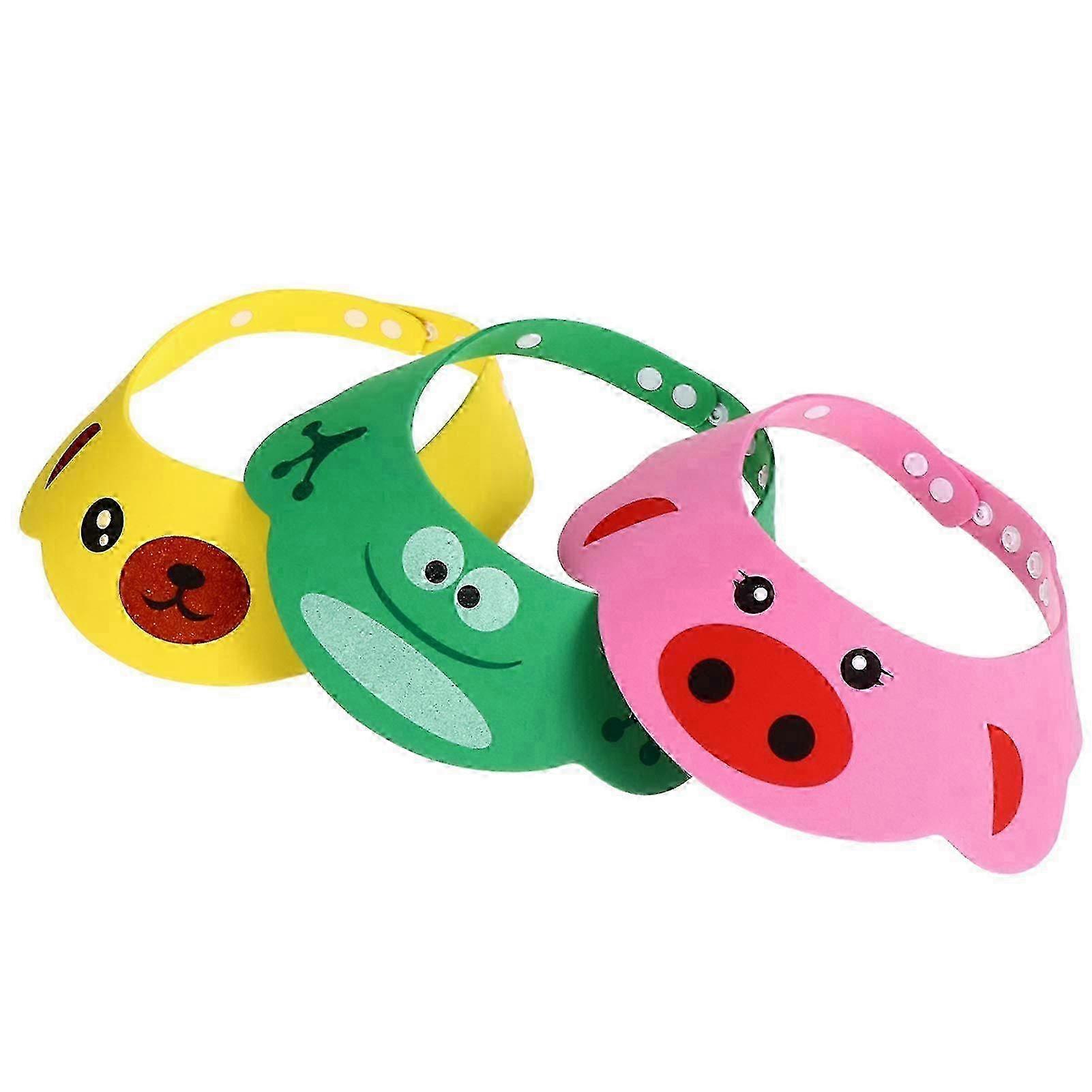 3Pcs Baby Bathing Cap EVA Adjustable Kids Shower Cap Shampoo Shower Protection Safety Visor Shield Hat Made of premium quality EVA material, suitable for girls, boys, babies, toddlers and kids as well. Protect the kids eyes and ears, make a funny bathing experience for kids. Cartoon design. You baby will love this baby shower cap. Ideal for bathing and showering time. Does not absorb water,, just use water to wash it off. Kids bathing helper. Help eliminate your childâ€s risks towards ear infections, etc. Note: Due to the light and screen setting difference, the item's color may be slightly different from the pictures. Please allow slight dimension difference due to different manual measurement.