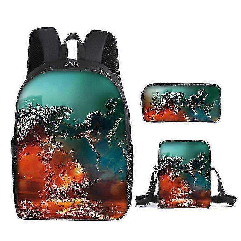 w Godzilla Schoolbag Children's Backpack Or Lunch Bag Or Pencil Case Or 3pcs Set Dinosaur Print Backpack For Kids