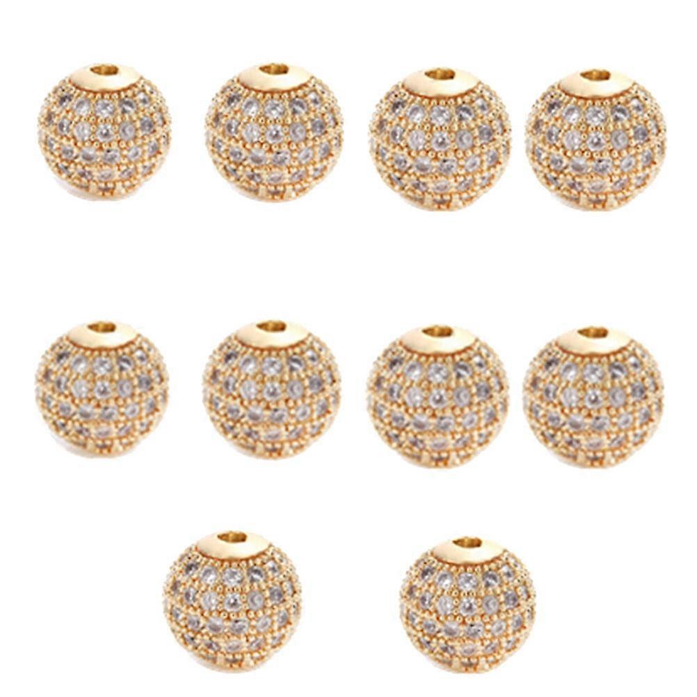 10pcs 10mm Bracelet Accessories Zircon Metal Diamante Round Beads for Jewelry Making DIY Bracelet(Gold-White Zircon)