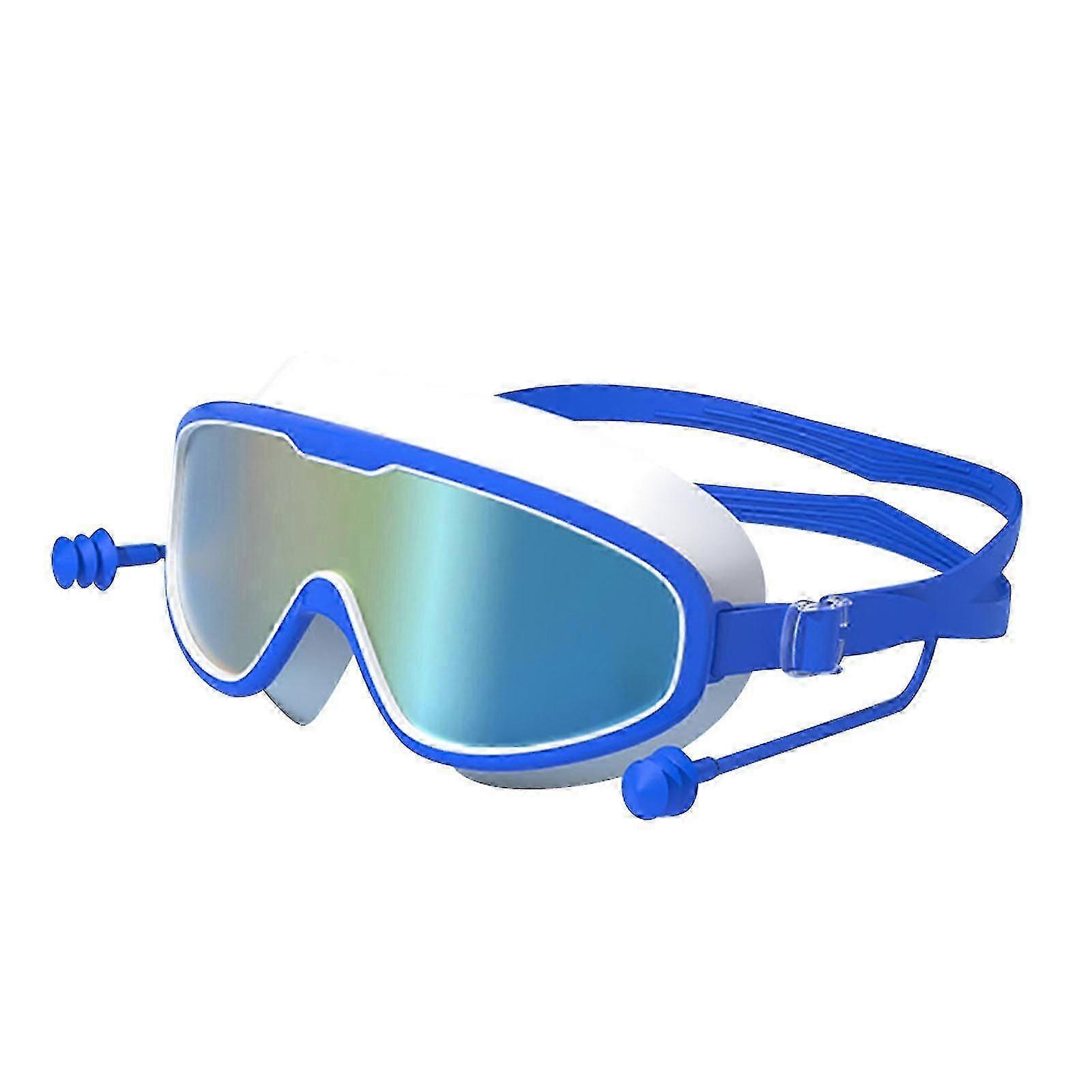 Adult Swimming Goggles Adjustable Anti-Fog Glasses Diving Underwater Protection Blue and White