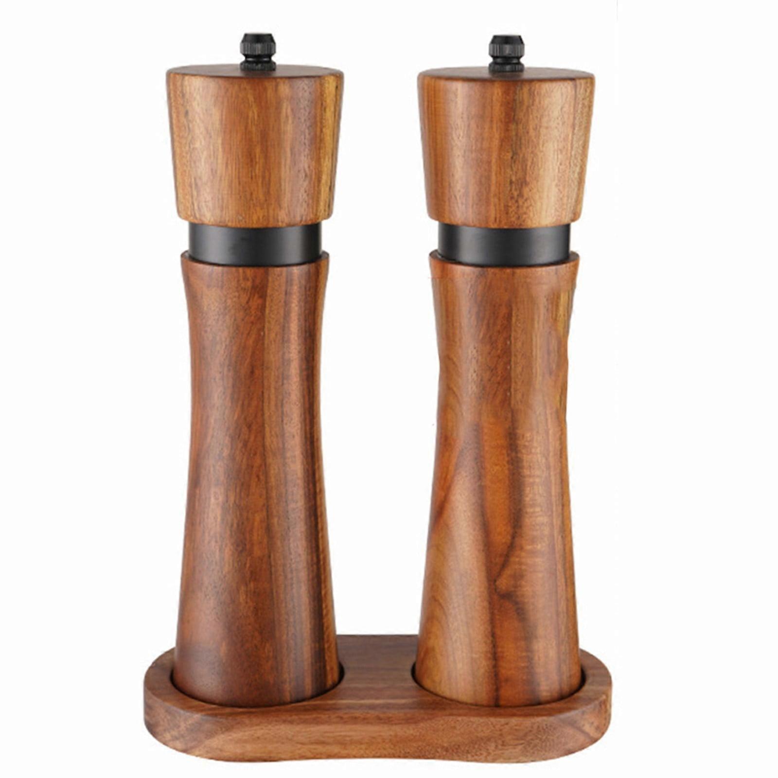 Mosiee Wooden Salt Pepper Grinder Set Pepper Mill Shakers Adjustable With Rack Stand