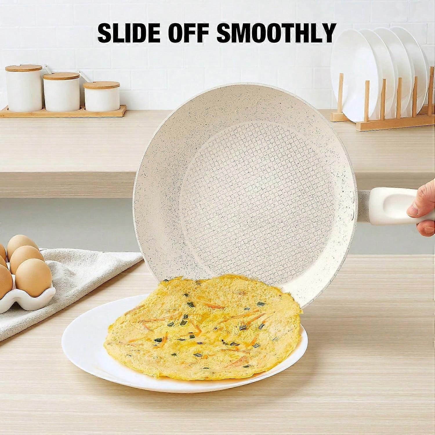 Nonstick Frying Pan 8/10 Inch White, Omelette Pan with Stay-Cool Bakelite Handle, Toxin-Free Marble Coating, Aluminum Pan for Healthy Cooking, All