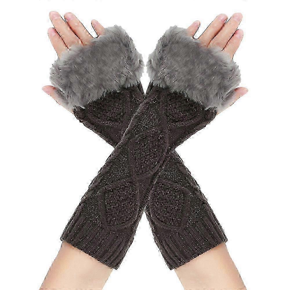 Long Faux Fur Arm Warmer Sleeves for Women, Soft Fingerless Gloves, Cozy Winter Accessories in Vario p