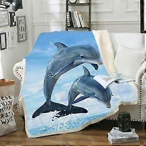 3D Sherpa Blanket Couch Quilt Cover Throw Fleece Velvet Animal Cute Dolphin