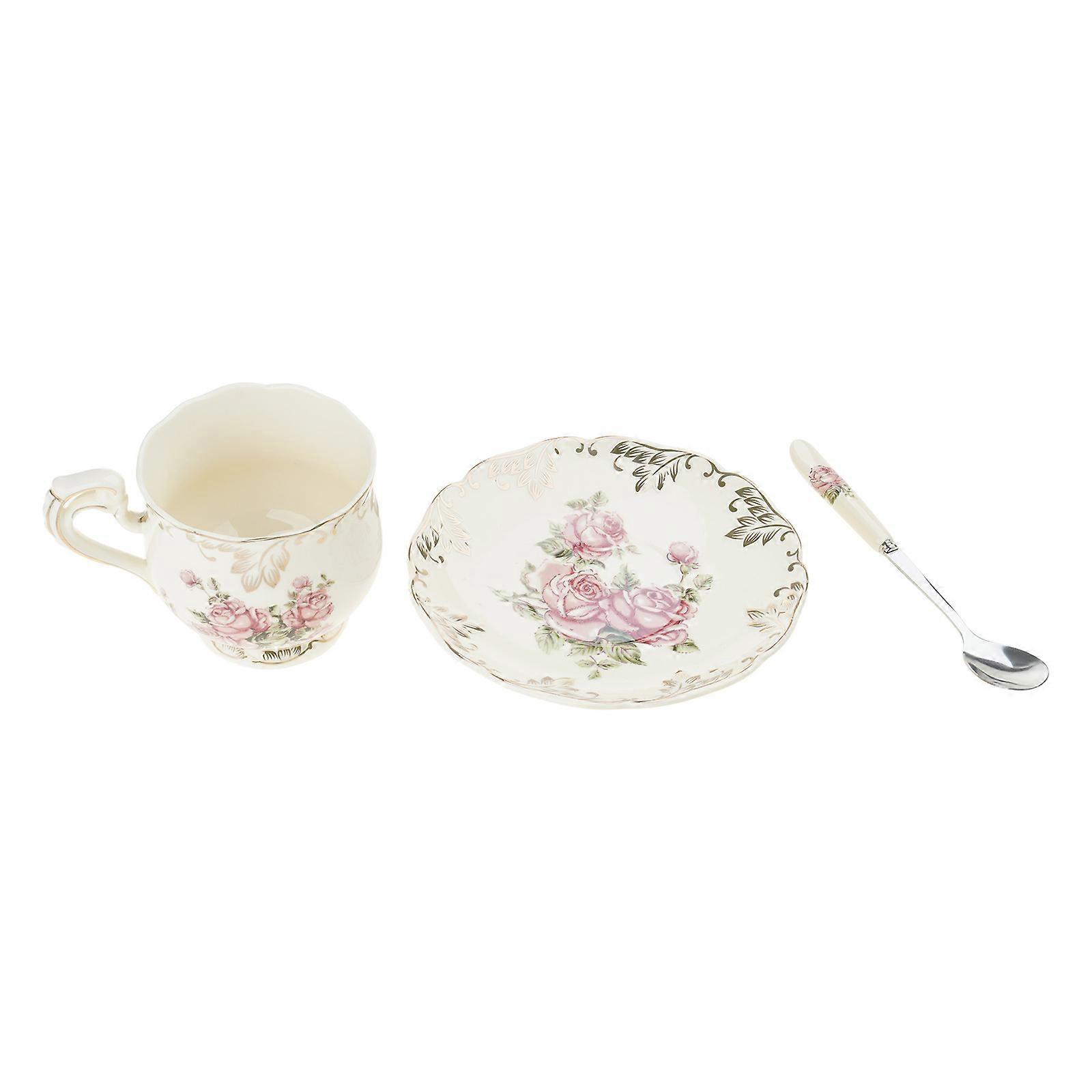 Teas Cup and Saucers Set Ivory Porcelain Coffee Cup Retro Flower Rose Ceramics Cup Set with Saucers and Spoon Drink Gift Multicolor