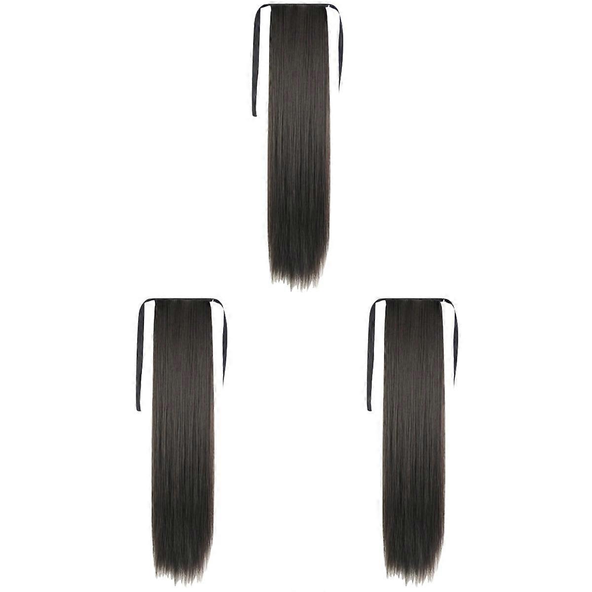 3 Pieces Women's Long Straight Hair Wig Ponytail Extension Extensions Synthetic