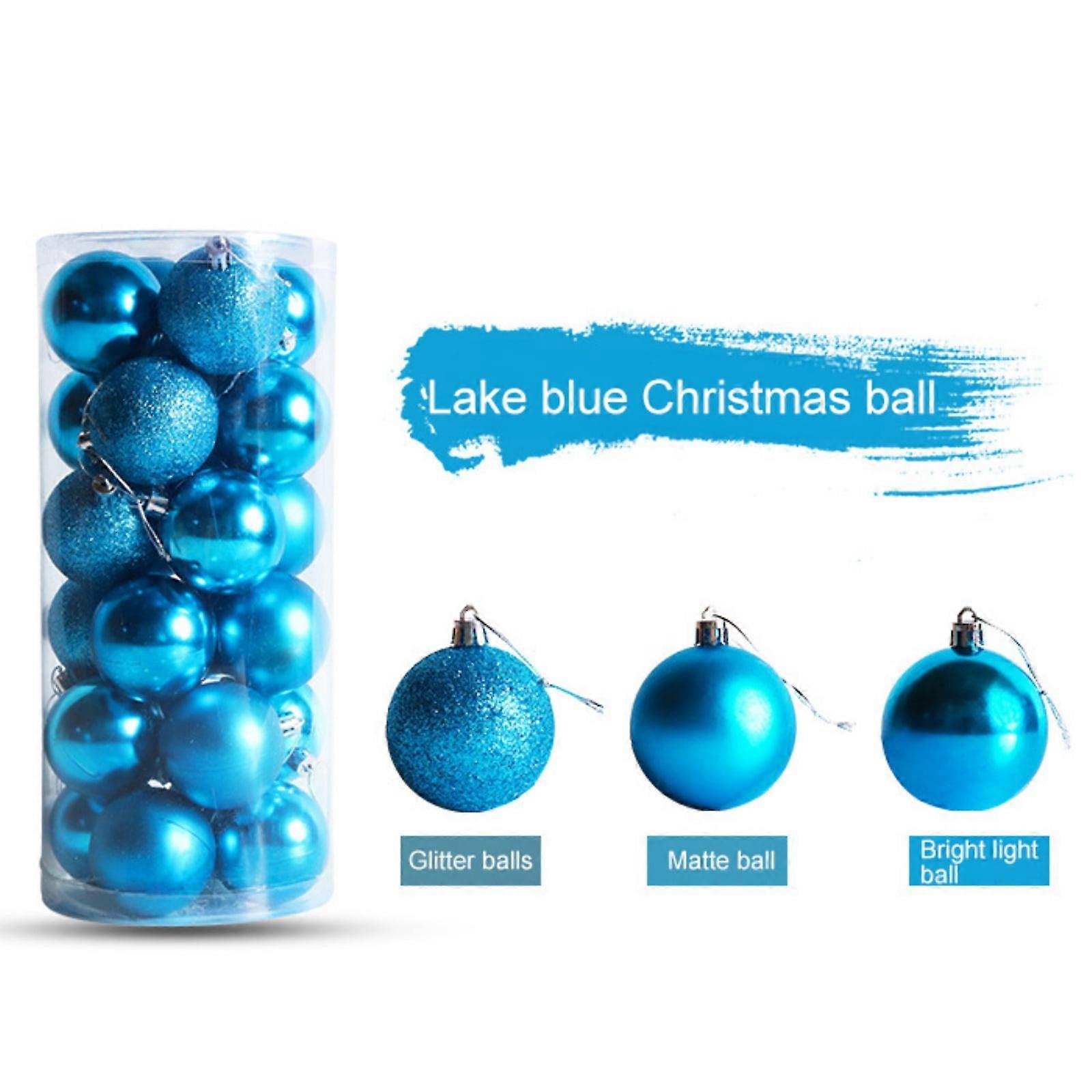 24Pcs Christmas Balls Assorted Pack, Thickened Shatterproof Sphere Electroplated Xmas Tree Hanging Ball Pendants Xmas Balls light blue 4cm