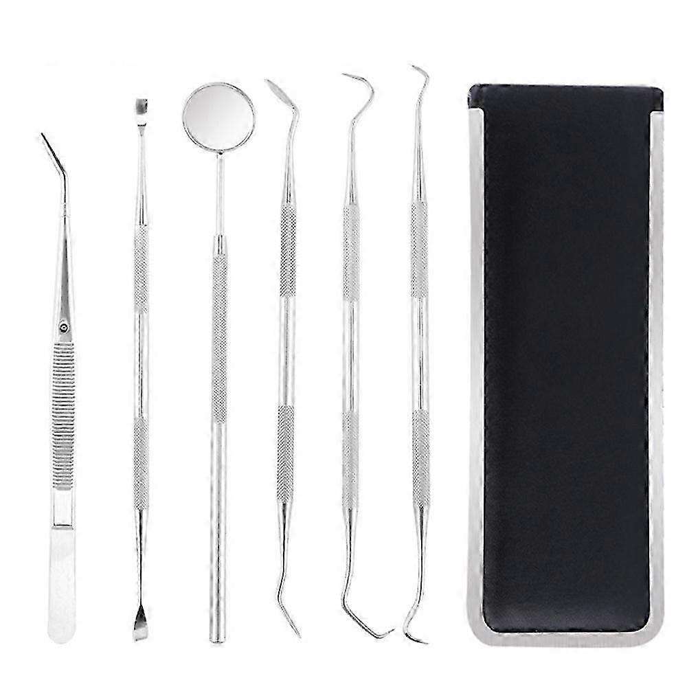 6-Piece Stainless Steel Dental Cleaning Kit with Mirror, Probe, and Sickle Tools