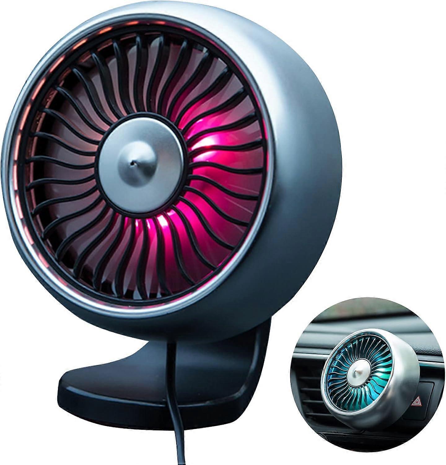 Can refresh the air in your car in hot weather Do you feel very hot when driving on a summer day Dont worry, this mini USB fan can quickly cool down the hot air and let you feel comfortable when sitting in your car. Multifunctional Car USB Fan Three speedslow speedmedium speedhigh speed, press the power switch to start the fan, low speed press the power switch once, medium speed press twice, press the power switch three times at high speed. In addition, the fan has a rotation angle, seven blades with strong winds. With gradient color lights, press the power switch for 3 seconds, can start the light mode, can give your car a romantic atmosphere. Two styles to choose from Our fans have two kinds of styles to choose from one style is air vent style which is suitable for the air vent location, the other style is suction cup base style which can be placed in the middle of the car. This USB fan size is 4.73.542.2, portable mini size does not take up too much space.