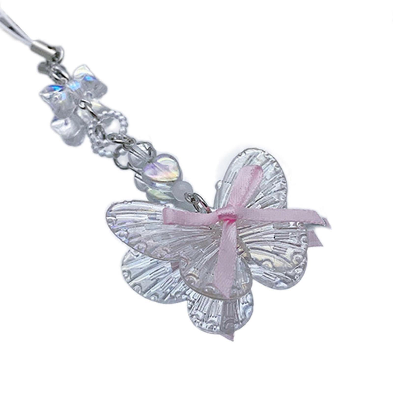 Fashion Bowknot Butterfly Heart Hanging Pendant Sweet Cool Phone Strap Bag Decoration Hanging Lanyard for Girls Women Multicolor