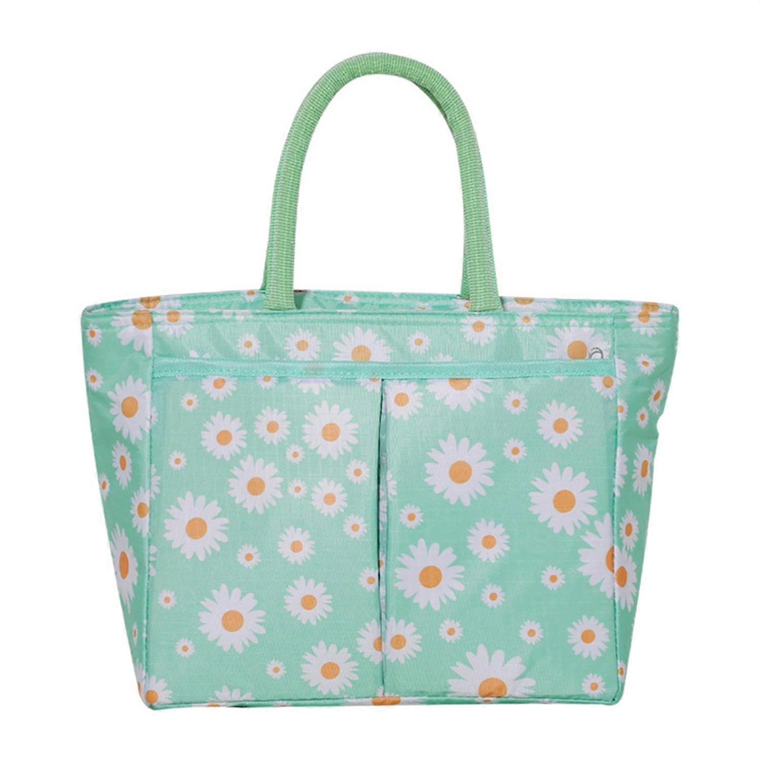Large Capacity Thermal Lunch Bag Daisy Printed Food Bento Lunch Box Insulated Pouch Picnic Breakfast Cooler Bags for School(Green)