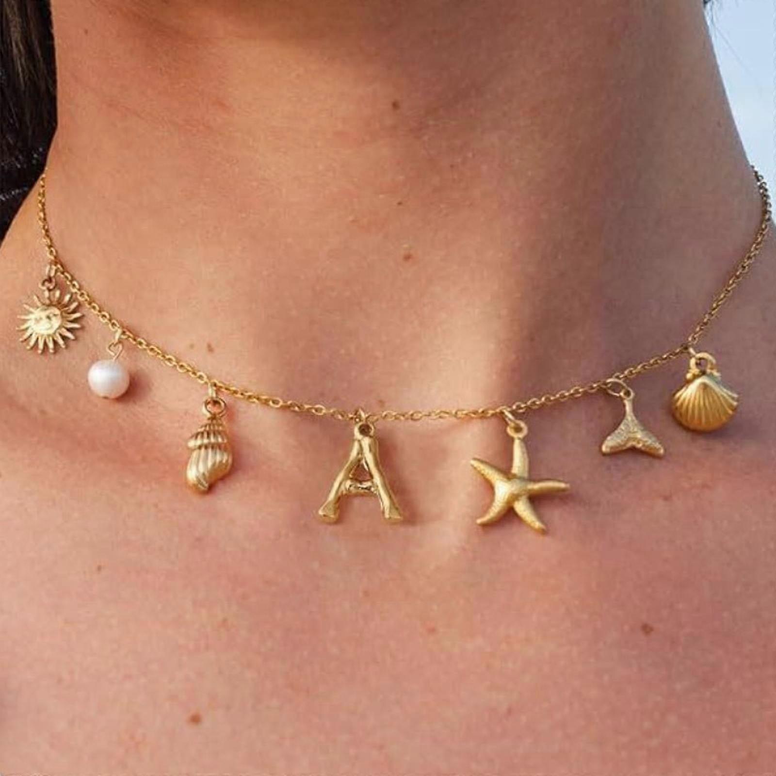 Uclet Necklaces & Pendants Fashion Simple Bubble A Z Letter Clavicle Chain Female Pearl Pendant Necklace Gift