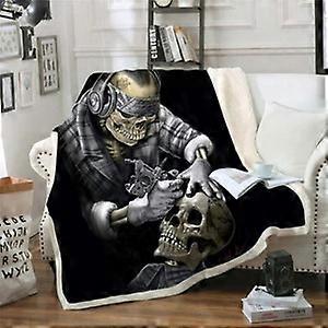 3D Beds Hiking Picnic Thick Quilt Bedspread Fleece Throw Blanket Skull Gothic