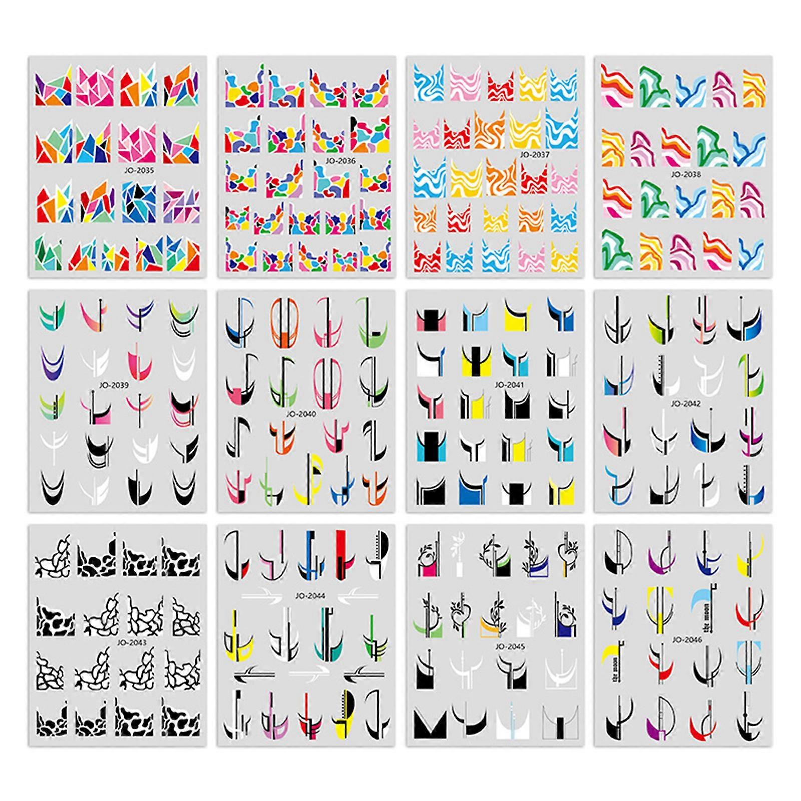 12xFrench Line Nail Sticker Nail Art French Tip Stickers Geometry French Nail Stickers French Nail Strips Self Adhesive Multicolor