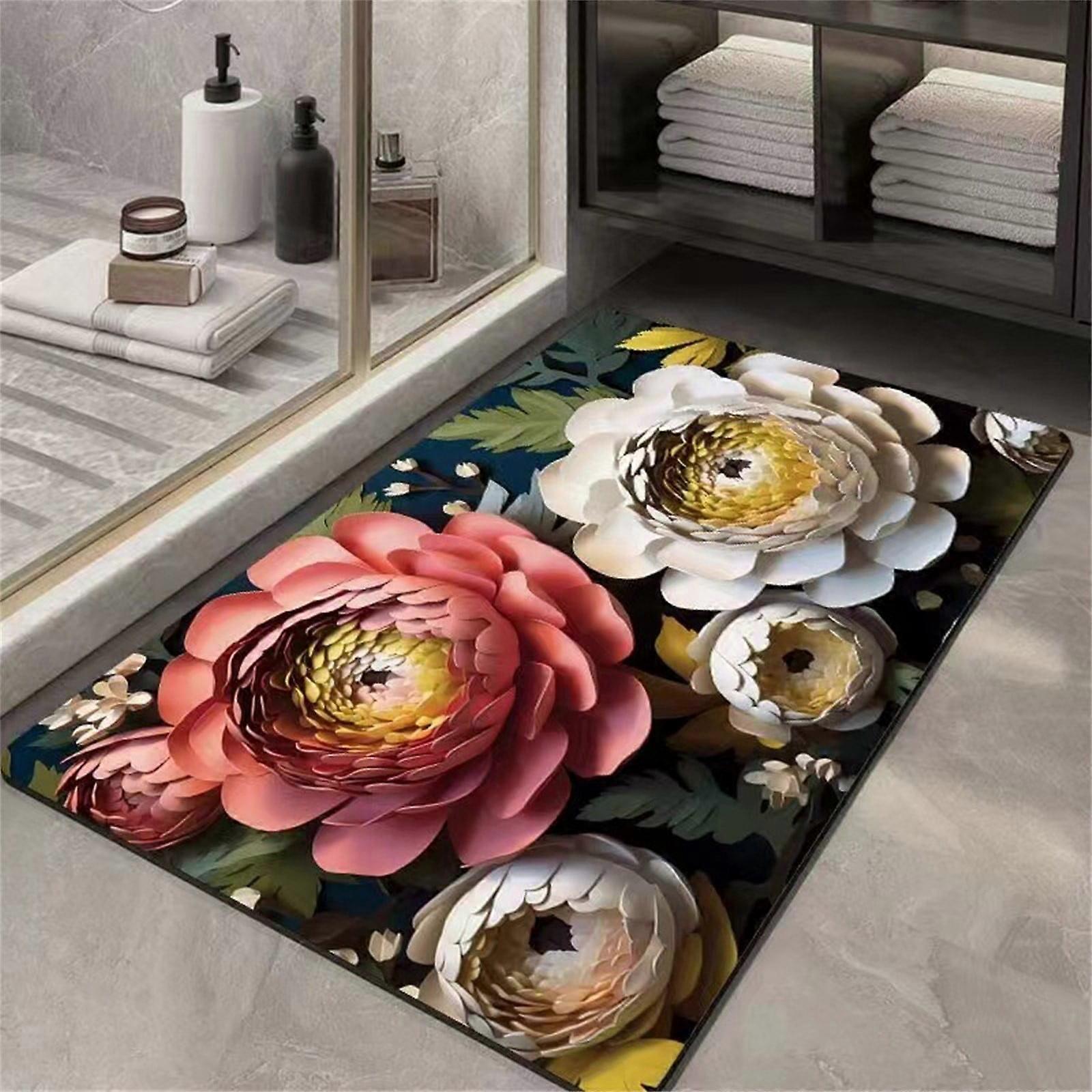 OYIGU Household Bathroom Flower Non-slip Quick-drying Diatomaceous Earth Absorbent Mat, for Bathroom Bedroom Floor