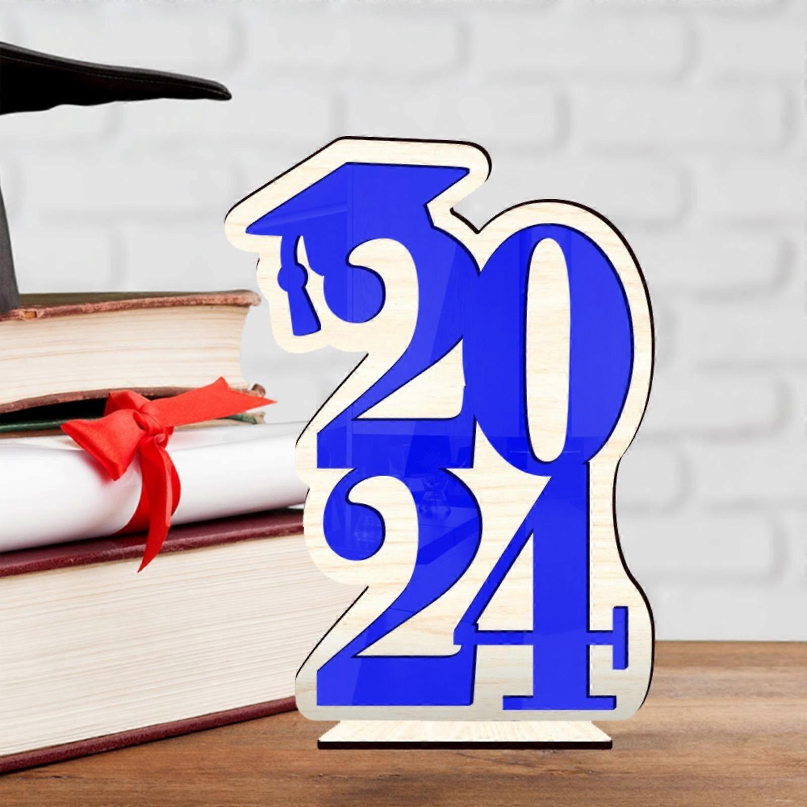 Xubond Graduation Ornaments 2024, Class of 2024 Grad Party Decor, Wooden Desk & Dining Table Decor, Home Decor for Grade Center