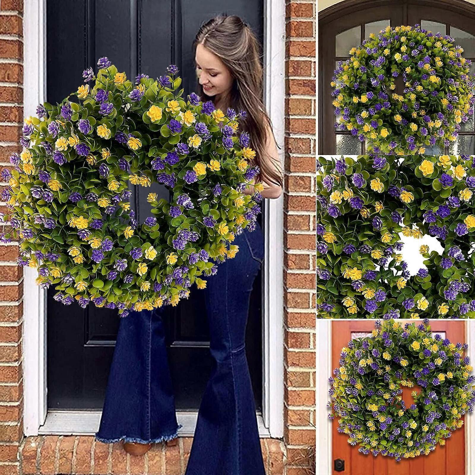 Yellow and Purple Eucalyptus Wreath, 50 cm (Unfolded), 1X Garland Decoration
