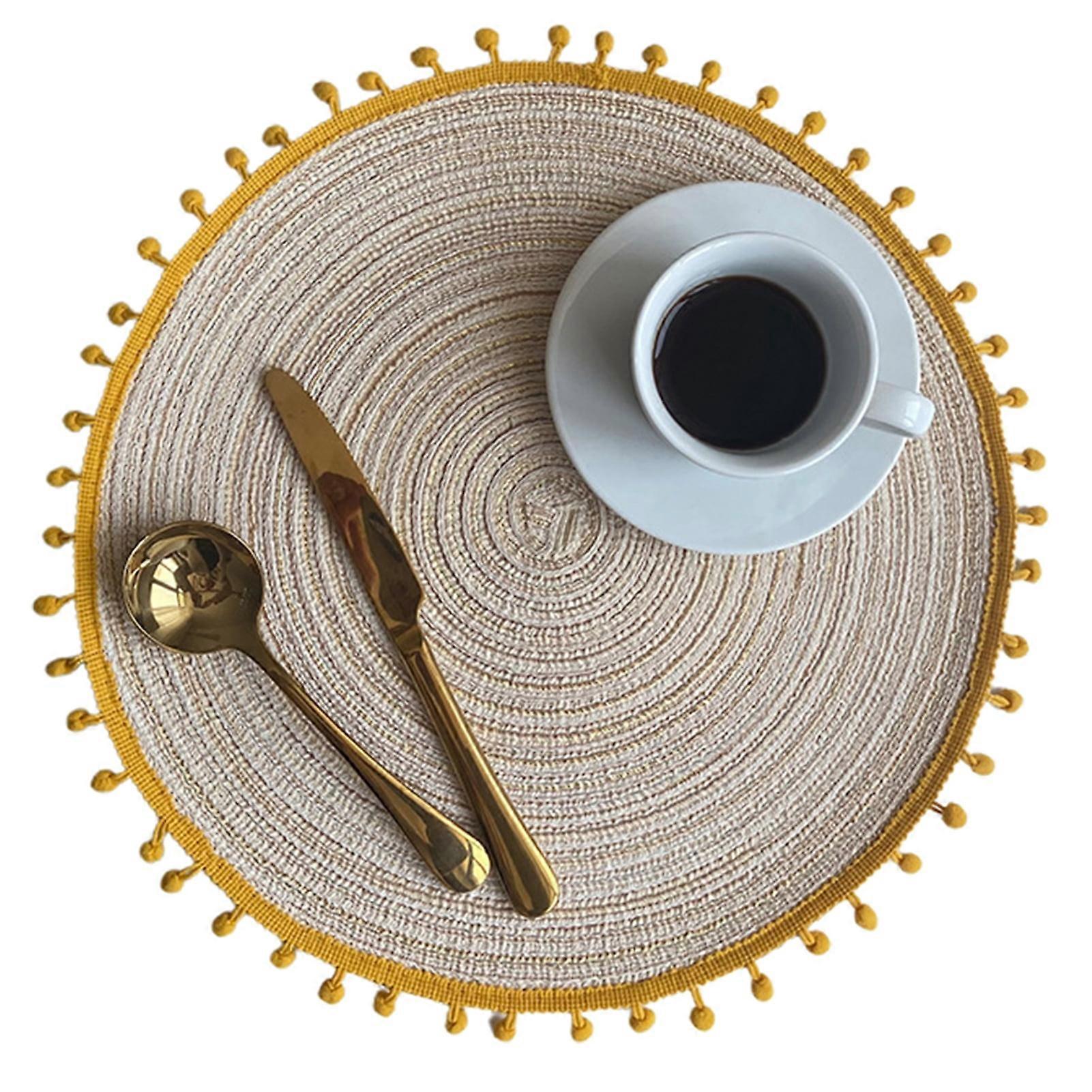 Farfi Hot Pad Non-slip Heat Resistant Cotton Yarn Round Woven Table Placemat Home Decor (Light Coffee,35cm)