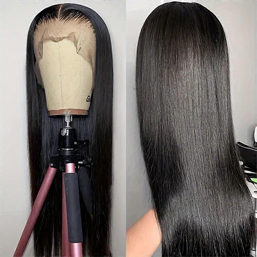 Long Straight Black Synthetic Lace Front Wig 180 Density, Heat Resistant Fiber, Pre Plucked, 28 Inch