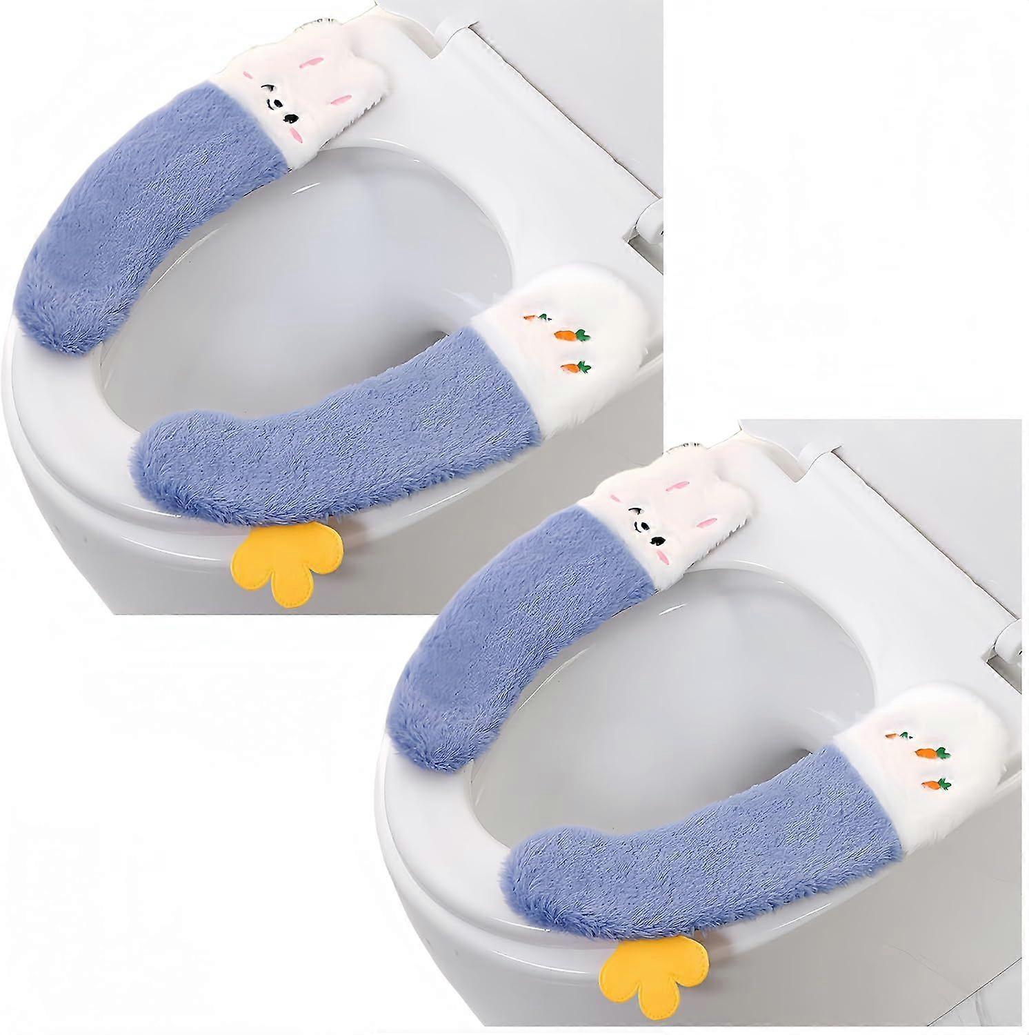 (BLUE) 2 pairs of toilet seat covers, thick and sticky toilet seat cover cushion, cute washable plush winter toilet seat, soft toilet seat cushion