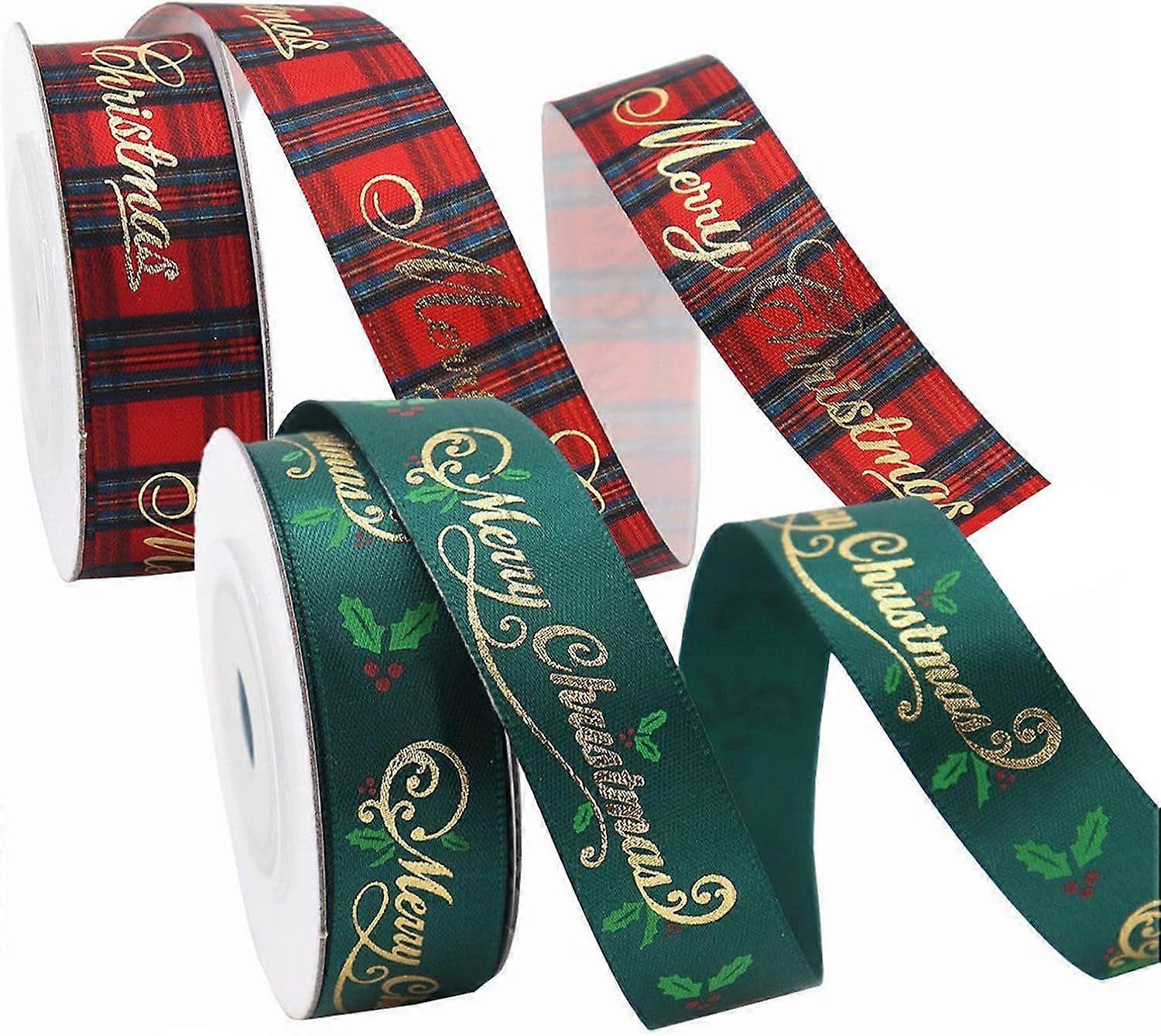 Yards Christmas Ribbon, 2 Rolls 16mm Christmas Gift Ribbon, Green/Red Christmas Ribbon with Christmas Pattern, Christmas Gift Wrapping Ribbon for Wrap