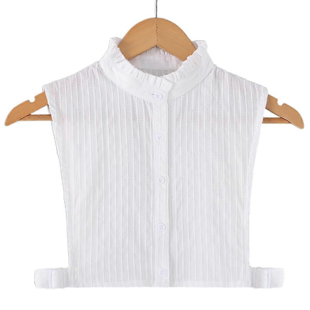 Korean Women Elegant White False Fake Collar Vertical Stripes DIY Adjustable Detachable Lapel Ruffles Half-Shirt Blouse Multicolor