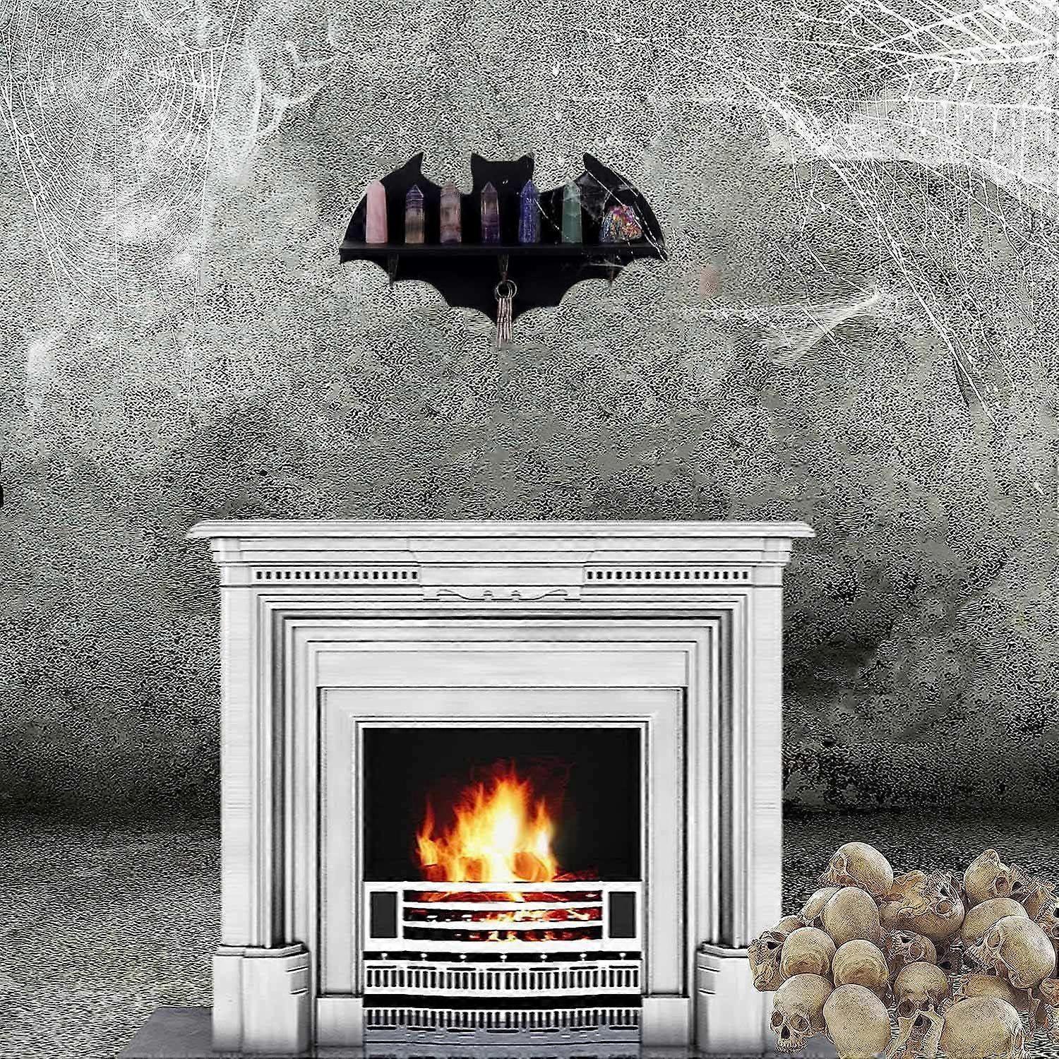 WJSXC Floating Crystal Shelf, Wooden Gothic Wall Shelf Compatible with Witchy Home Decor, Black Multicolor Coffin Design