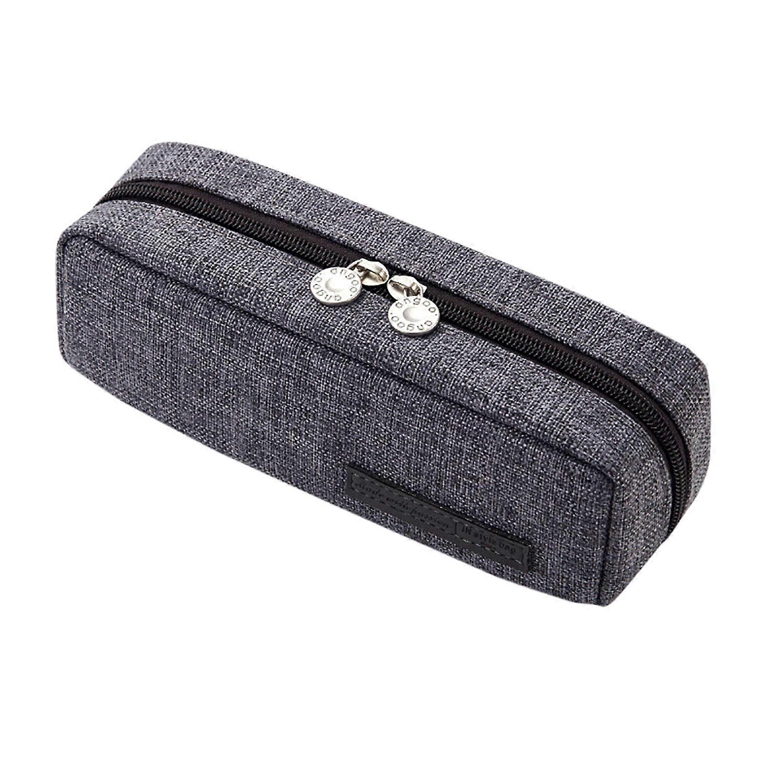 Multifunctional 3-Layer Canvas Pencil Case, Large 3-Compartment Pouch Holder Compatible with School Supplies, Special Gray