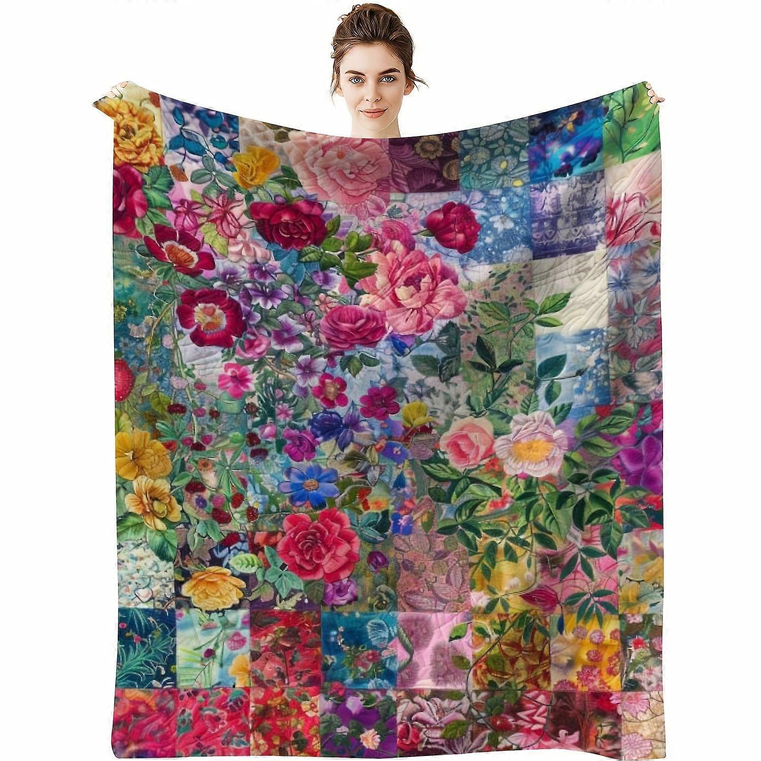 Vintage Floral Patchwork Flannel Throw Blanket - Soft, Cozy Gift for Mom | All-Season Comfort for Couch & Bed-edcvb204