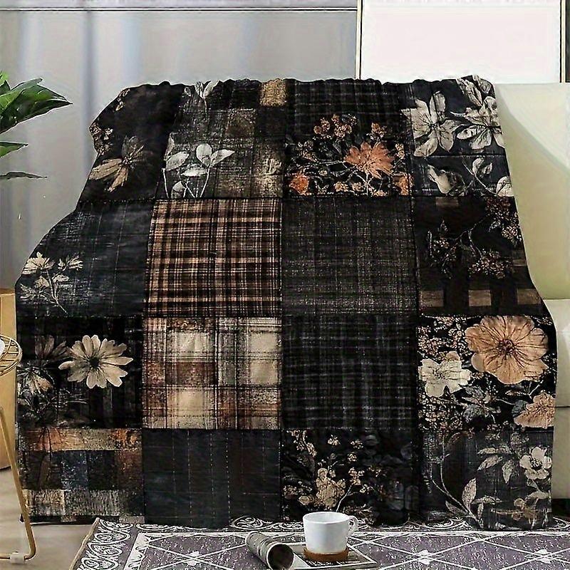 [Cozy Vintage Plaid Blanket] Soft & Warm Vintage Plaid Flannel Shawl Blanket - 280gsm, Black & White Checkered with Flor-pkjhg120