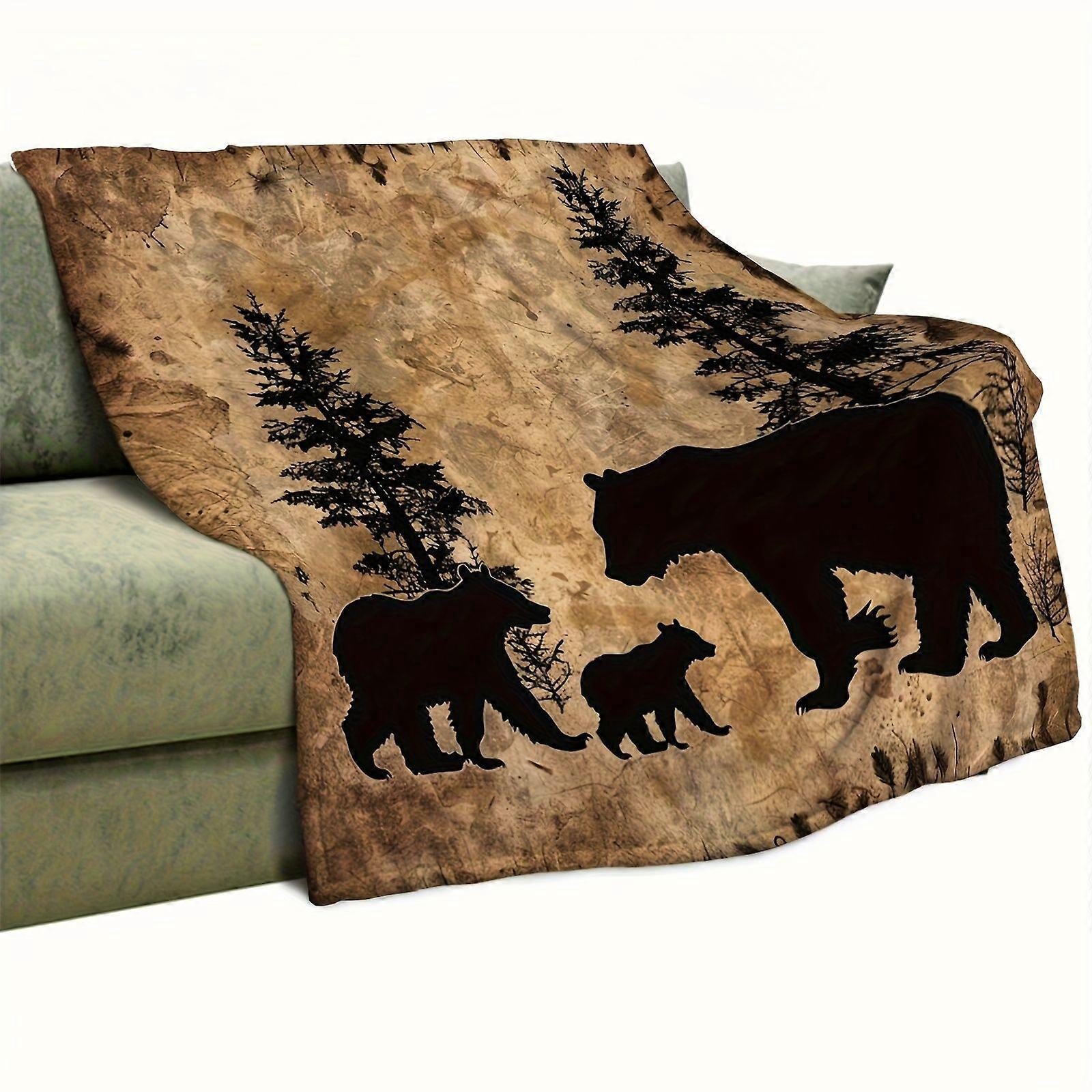 [Retro Throw Blanket] Extra Large 70s Retro Heavyweight 280GSM Flannel Throw Blanket - Beige & Black Forest Animals - So-tfcxz9