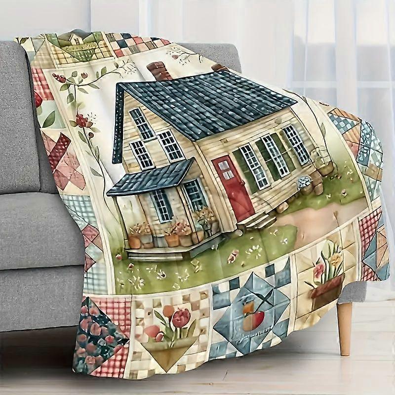 Vintage-Inspired Flannel Throw Blanket with Cross & Dove Design - 280gsm Soft Polyester Blend, All-Season Cozy Comfort, -tfcxz22