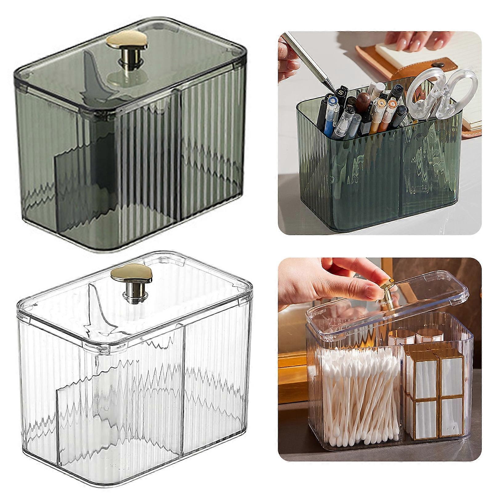 SUSUchens Cotton Swab Storage Box with Lid, Clear Acrylic, Dustproof, Large Capacity, Compatible with Makeup Brushes, Cosmetic Organizer, Green