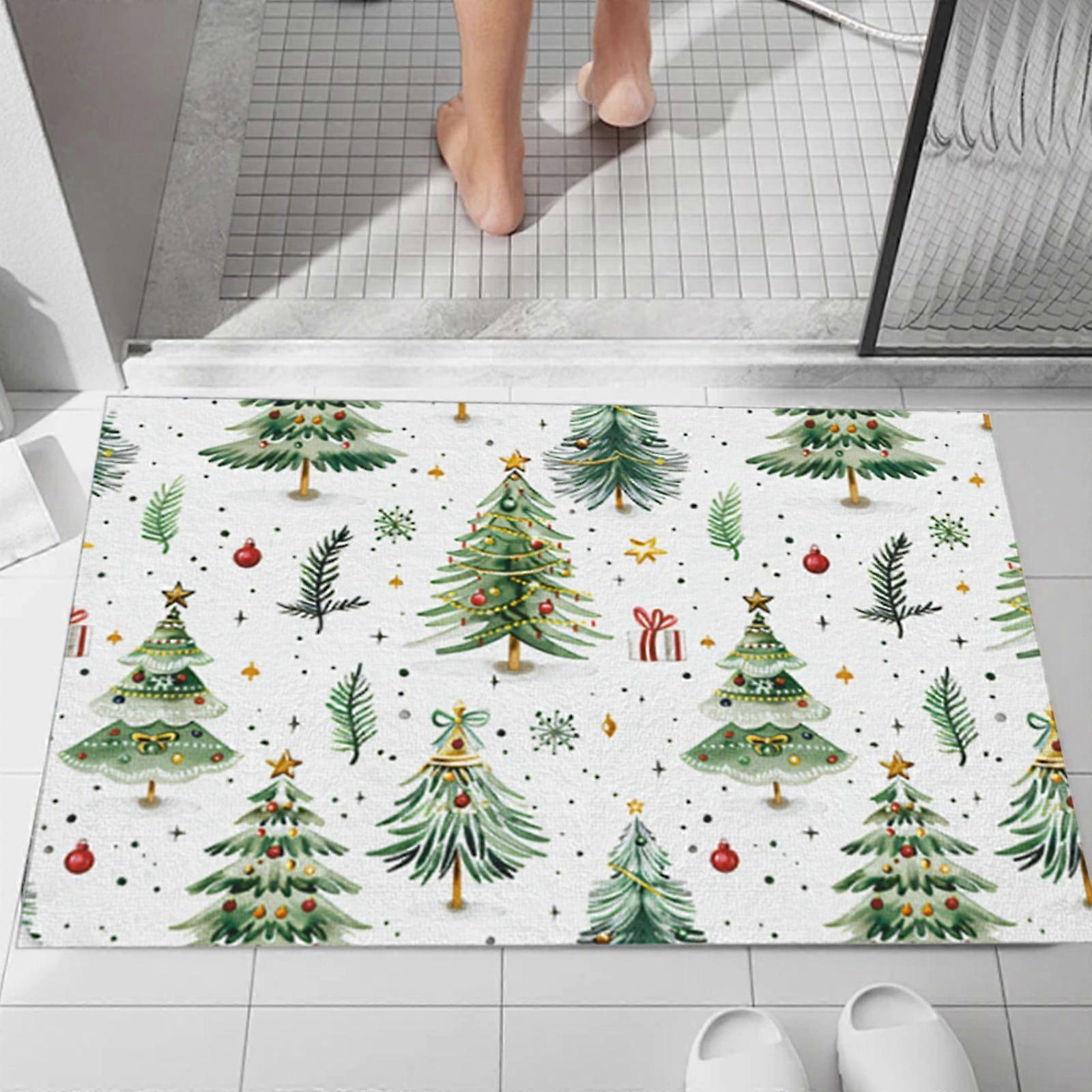 Christmas Rugs for Kitchen, Cute Christmas Doormat, compatible with Outdoor Entrance, Non-slip Absorbent Floor Mat, Easy to Clean