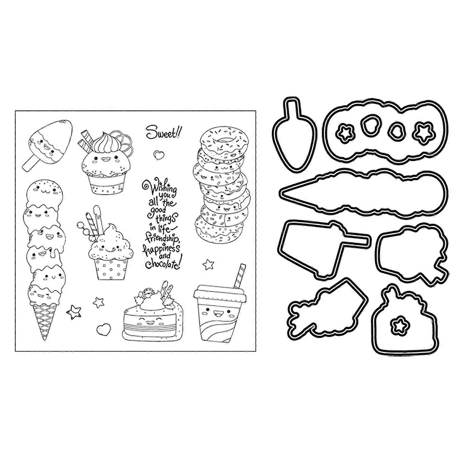 Embossing Cutting Dies and Scrapbooking Stamps Set Clear Silicone Stampers for Card Making DIY Scrapbooking Photo-Album Multicolor
