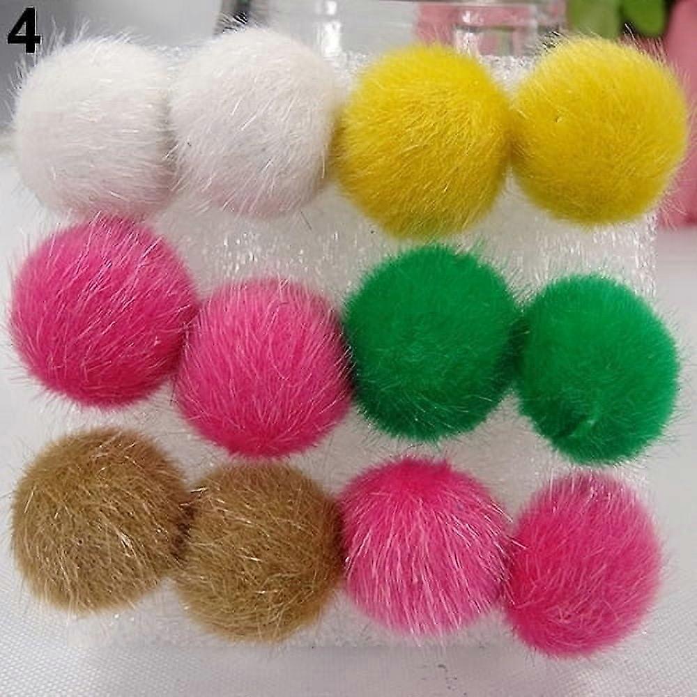 6 Pairs Lovely Warm Furry Square Round Star Heart Plastic Stick Earrings